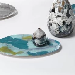 Inspired by the view from a window seat, as the plane takes off, your gaze is framed by the oval shape of this high-flying mirror. The frame’s grey-blue color is reminiscent of the blue sky obscured by the clouds as you ascend through the atmosphere.