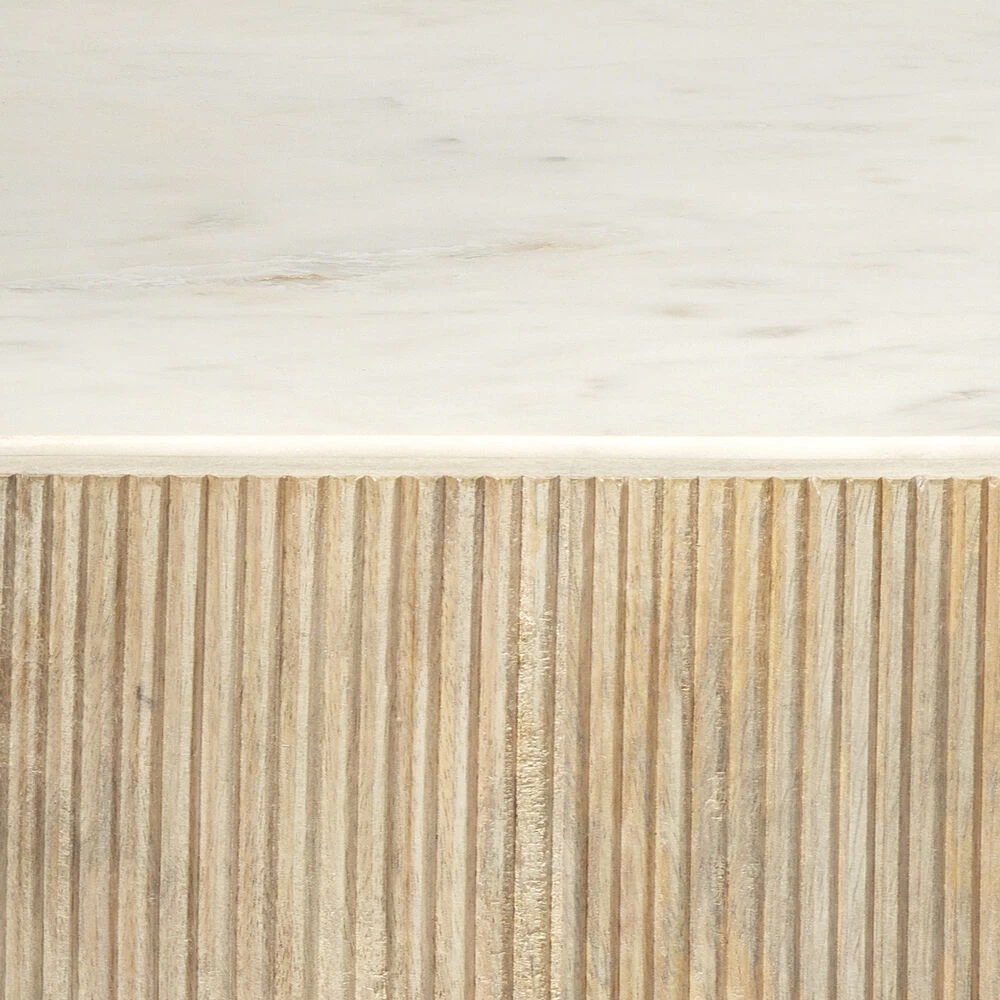 Simple, yet stunning our Argan Hexagon tables use a ribbed washed wood and white marble to create a brilliant side table that is light in feeling but large in size, perfect for any airy living room.Size of marble top will vary slightly. Marble is a natural stone with naturally occurring veining, colors and patterns, each piece is unique. Finish will vary. Minor assembly required.