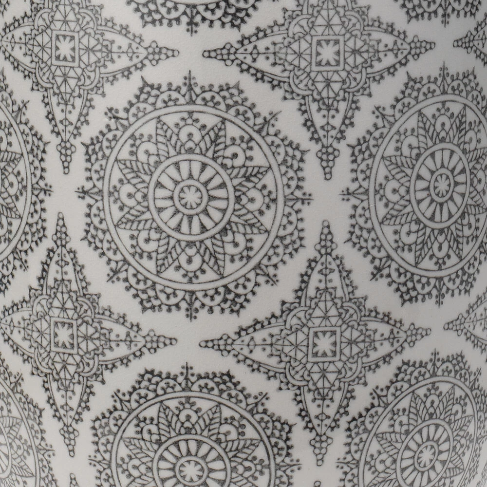 A delightful ornamental Indian wood block style circular pattern adds charm to this classically shaped table making it irresistibleand perfect for any space.