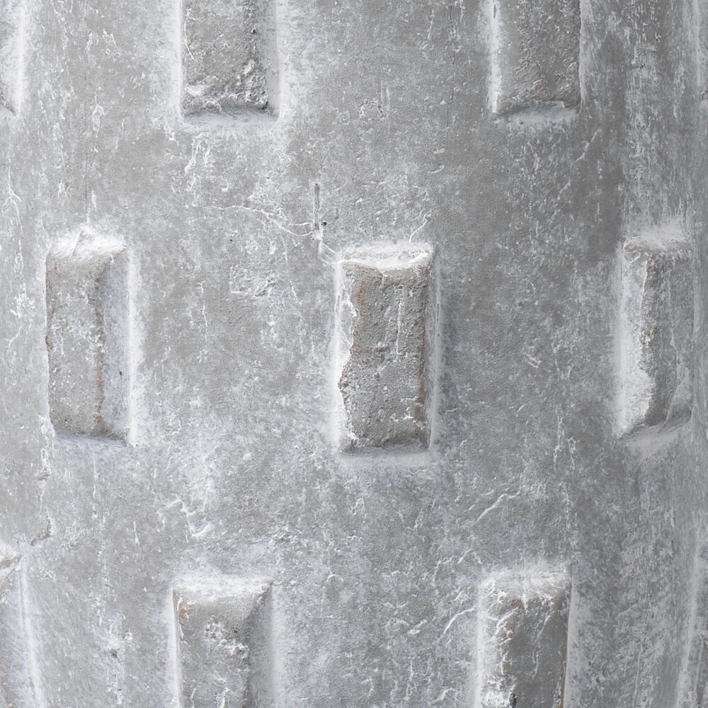 This ceramic lamp has a grey concrete texture, accented with rectangle protrusions, creating a distinctively modern base. Handmade, size and finish will vary.