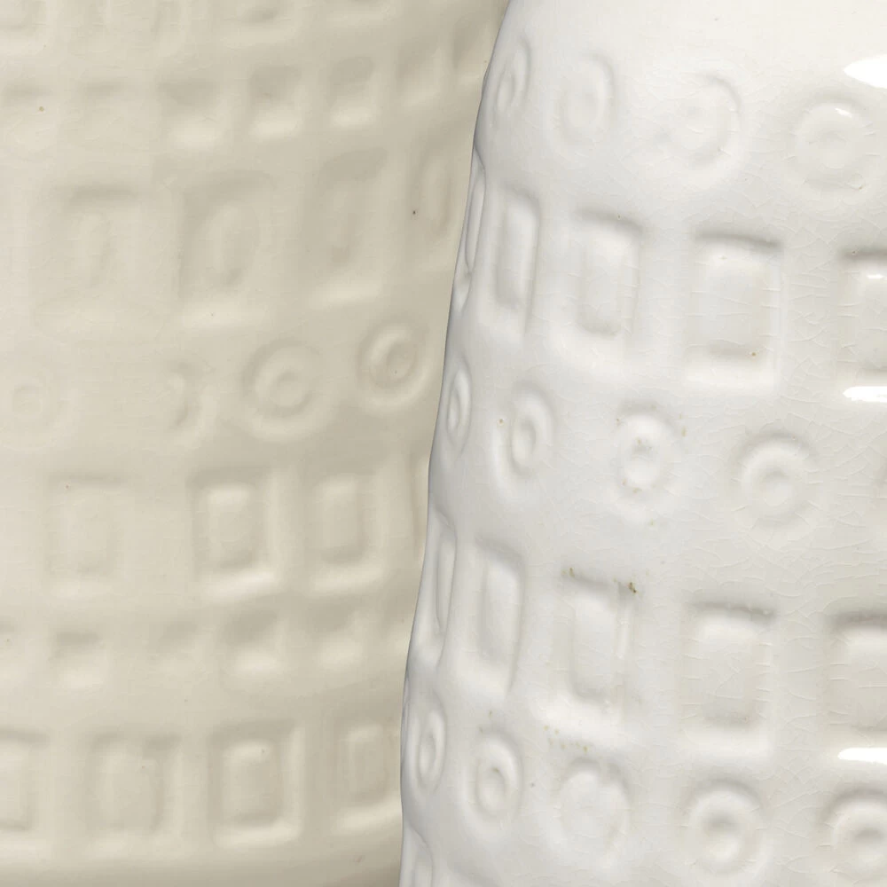 Sturdy and unique, the Coco Ceramic Vessels are intricately designed accessories with international flair. Fashioned from ceramic with expressive, geometric patterns, this eye-catching pair is versatile enough to display flowers, store treasures or leave as-is. Place them atop a shelf or dresser for an artsy touch.