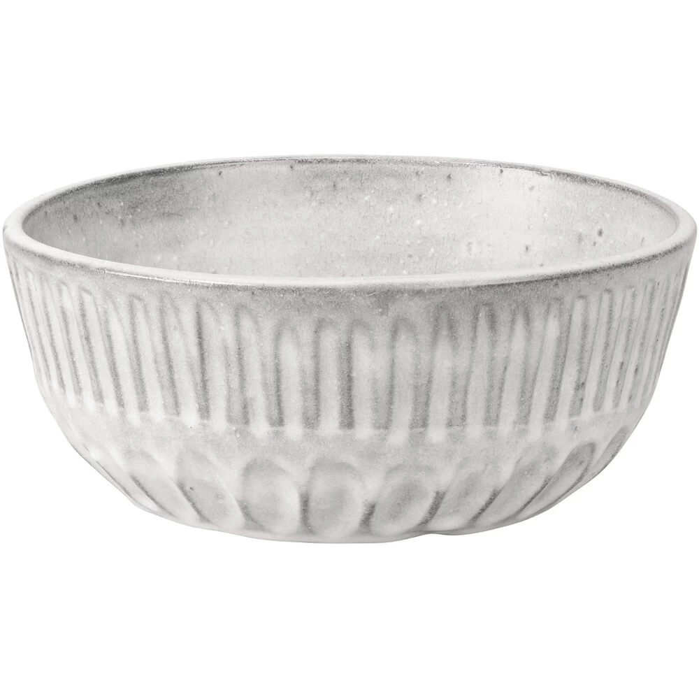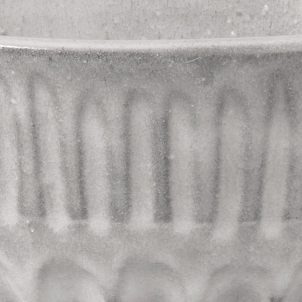 The ash tones and soft textured patterned banding of this handmade bowl make this piece exceptionally adaptable and attractive.