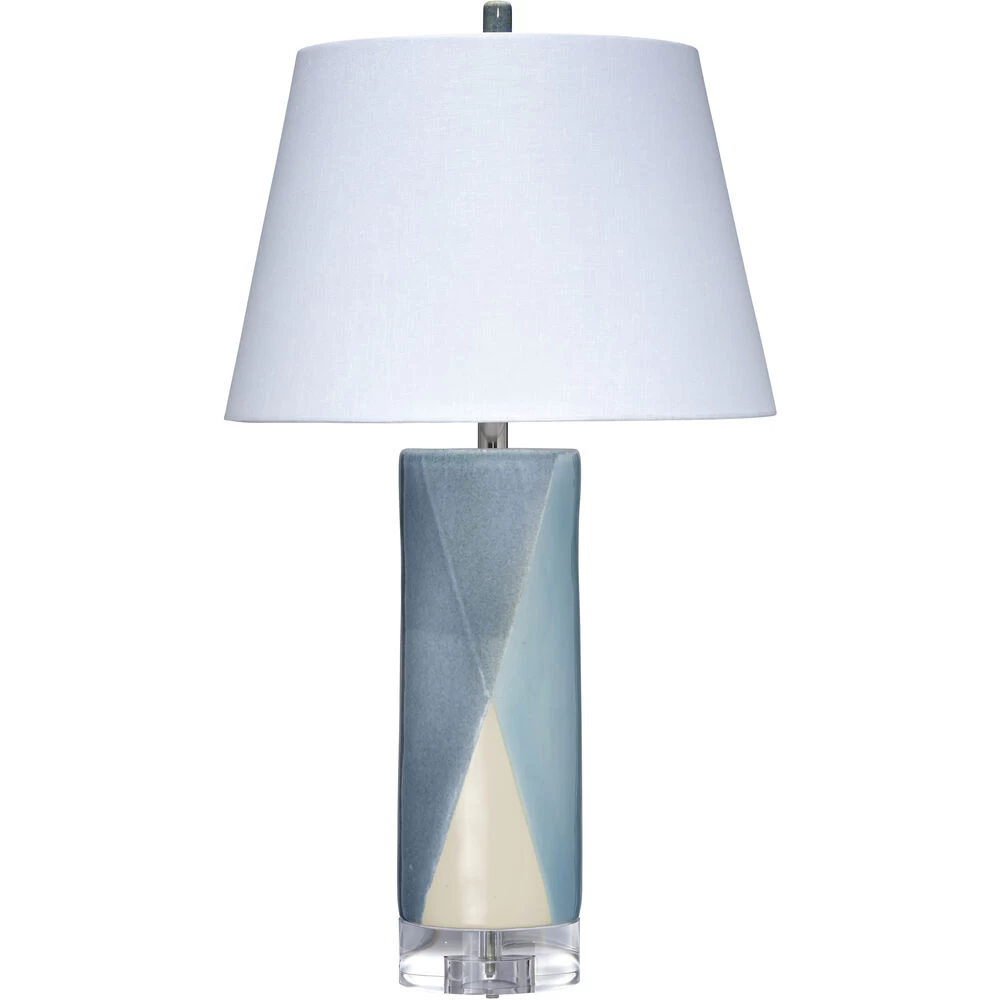 A wonderful feeling of calm is evoked in this enchanting table lamp. The handcrafted ceramic body seems to float above its resin base, and the clever diamond design draws the eye up to a tapered shade in crisp, cool, white linen. A coordinating ceramic finial adds the final touch. This lovely lamp will add a feeling of brightness to your room, even when it isn’t lit, and is ideal for decors from coastal to country.