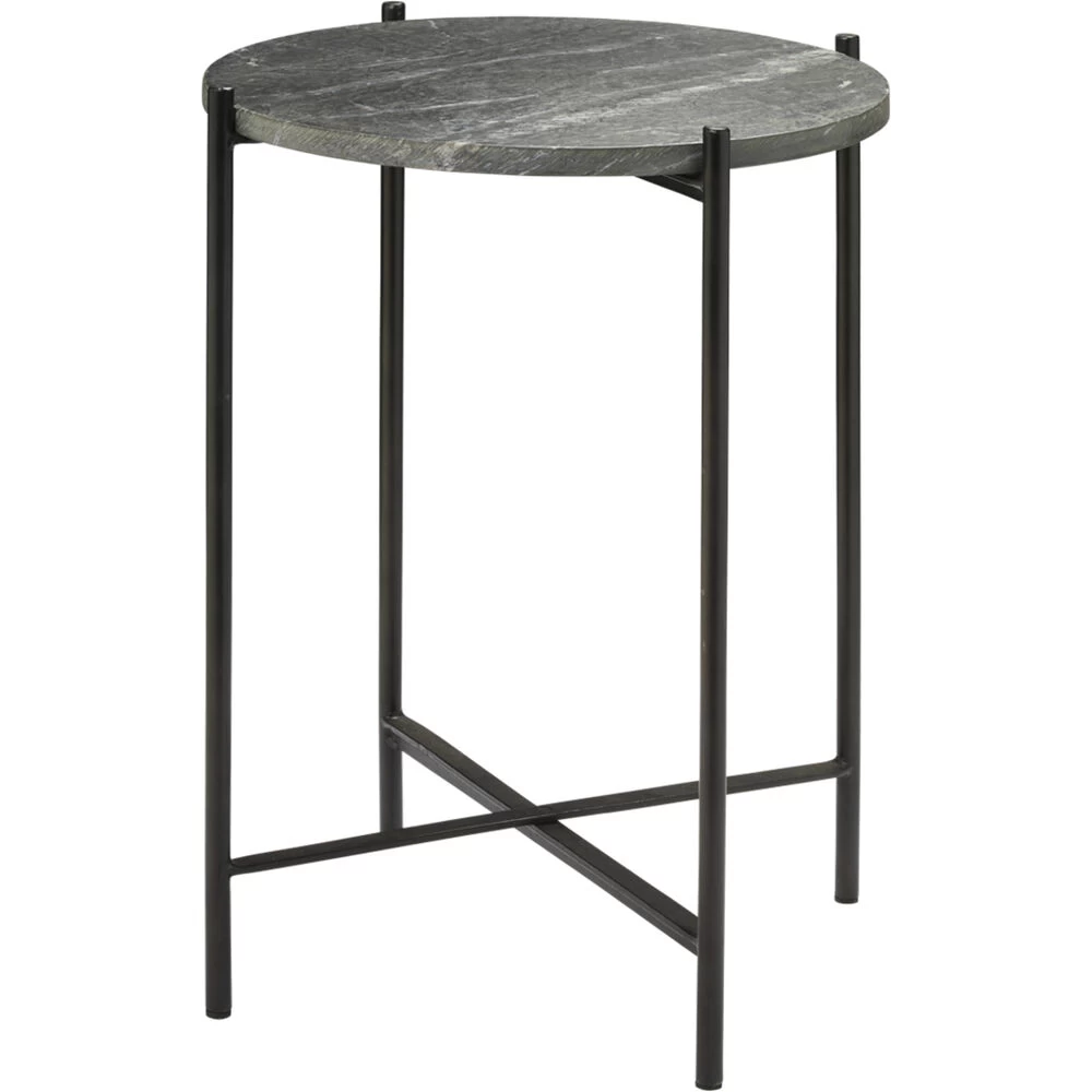 We’ve placed a raw, simple slab of marble atop refined black metal legs to play up the contrast of heavy marble and metal that looks light as air. This table comes in two perfectly neutral finishes of grey and black marble, both on black metal legs.