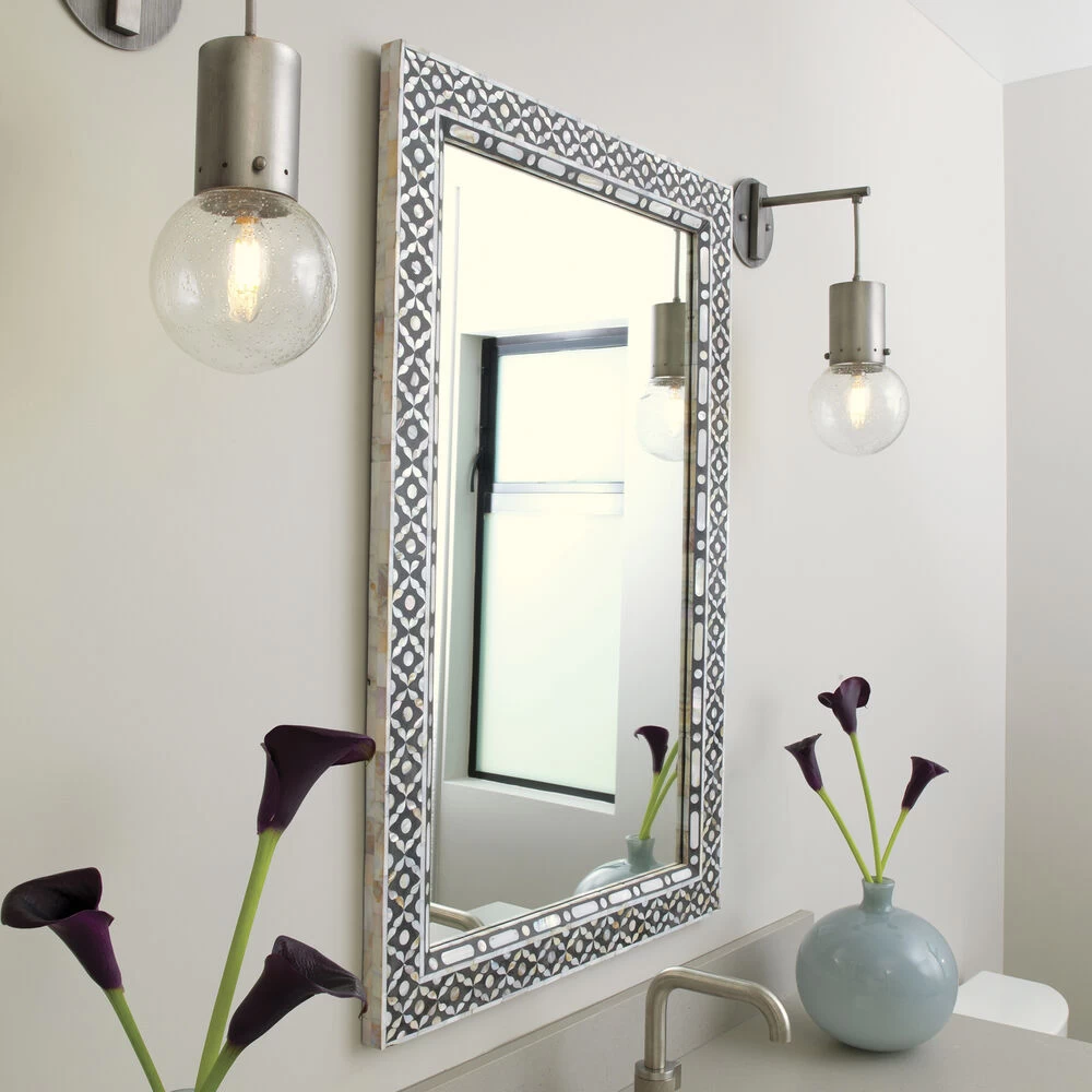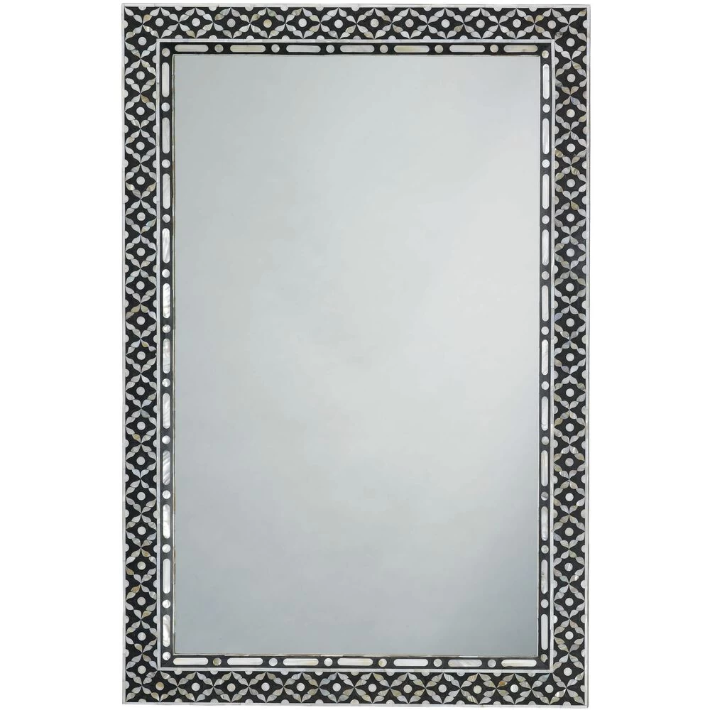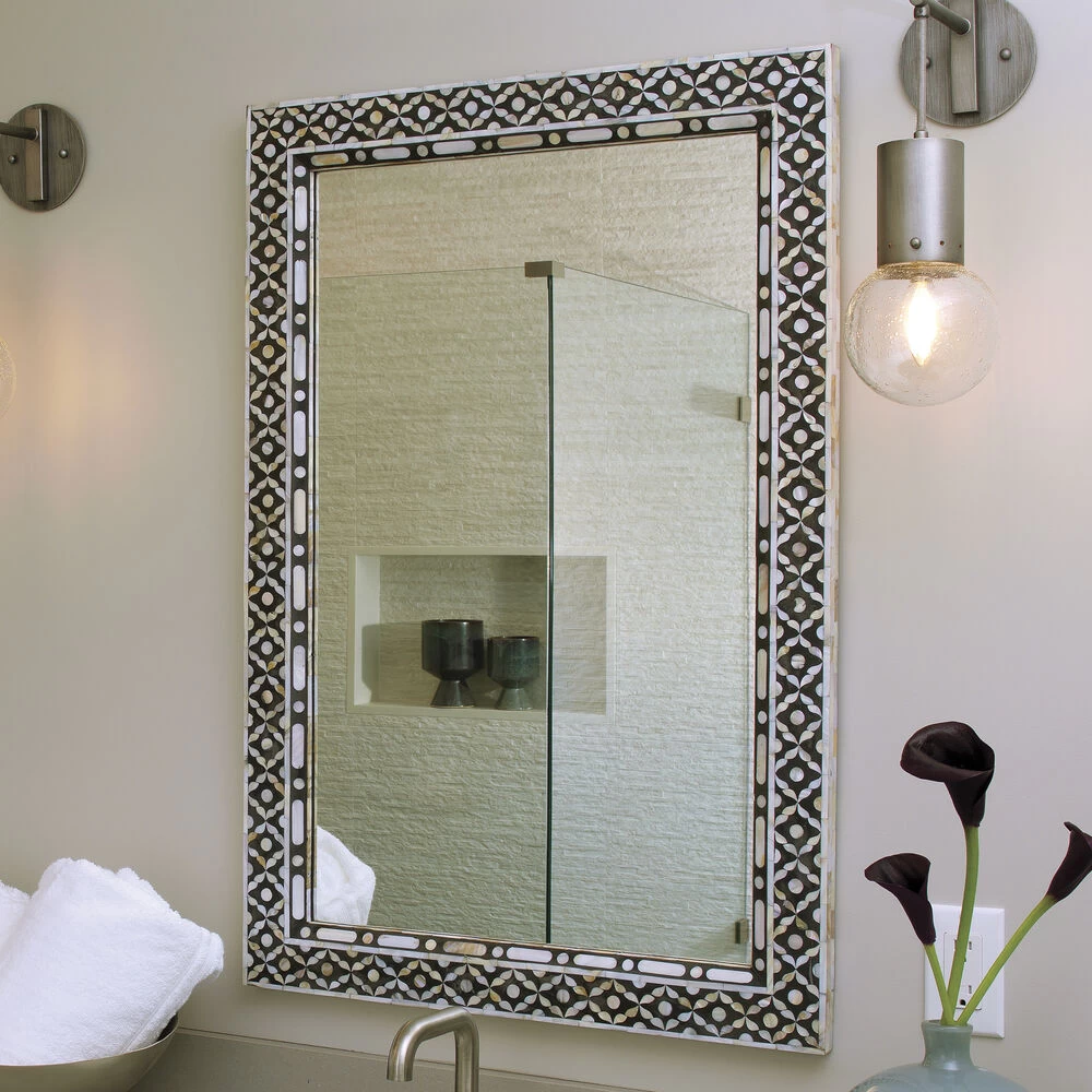 Mother of Pearl inlayed in an exquisite design for an exotically graceful accent to any room in a beautiful grey and white pattern.