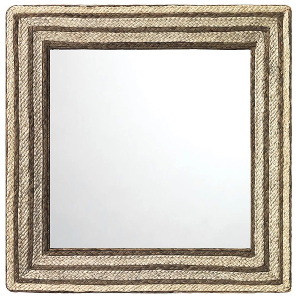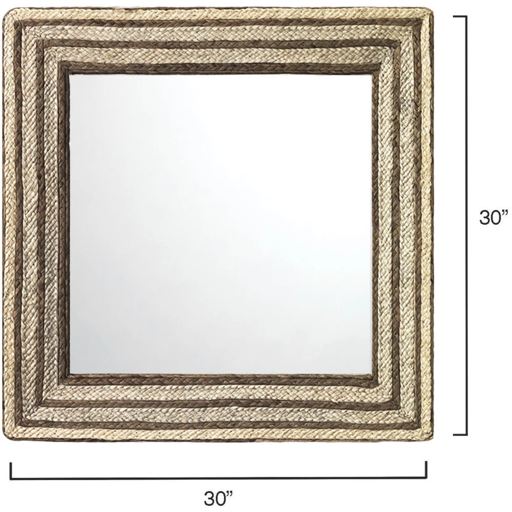 Braided seagrass wraps around the Evergreen Mirror’s square frame to highlight it’s geometric shape. The woven frame gently recesses towards the glass to add depth and dimension to this otherwise naturally, simple mirror.