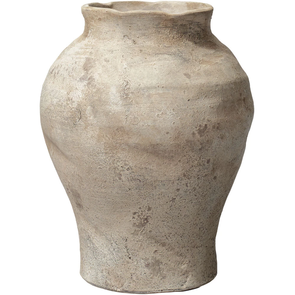 The classic urn silhouette of this decorative vase is traditional, but the handcrafted details give the vase a personality of its own. The hazelnut ceramic is shaped by hand and given a weathered surface effect to create an antique texture and form. Its unrefined shape and earthy color palette will bring a warmth to your existing decor. Each vase is a one-of-a-kind piece of art. As such, their exact shape, color, and finish will vary slightly.