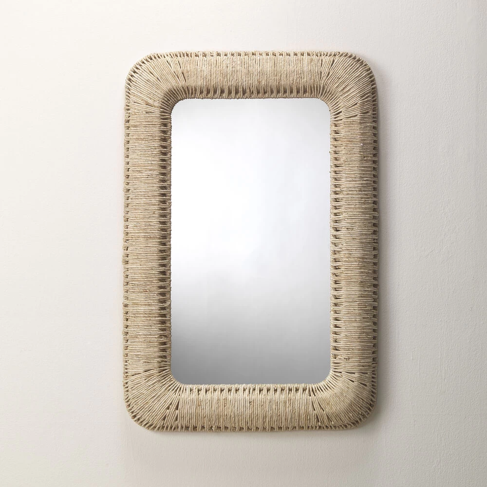 Crafted by expert artisans, every inch of the Hollis mirror’s frame is painstakingly, and artistically, wrapped in rope created from sustainably harvested corn straw. The intrinsic beauty of the natural material is allowed to take center stage, and flaws in the organic material are celebrated. The look is tropical yet sophisticated, and perfectly at home in today’s more casual decors.