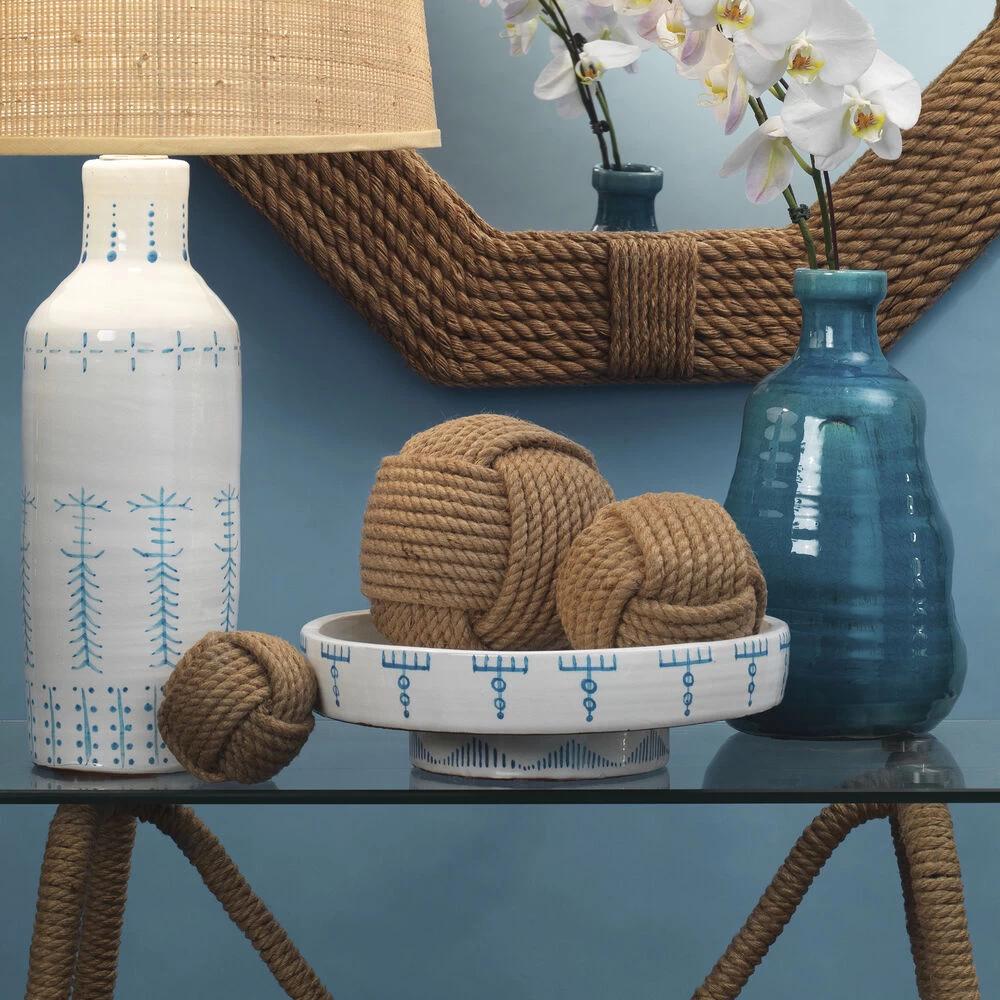 Recalling marine rope on sailboats, the Natural Jute Balls are whimsical, rustic home accessories that liven up any space. Constructed out of coarse, fibrous material in a solid, globe design, these pieces seamlessly combine traditional and coastal-inspired elements for a warm look. Display all three in a large glass bell jar for a dose of shabby elegance or place individually on shelves for visual interest.