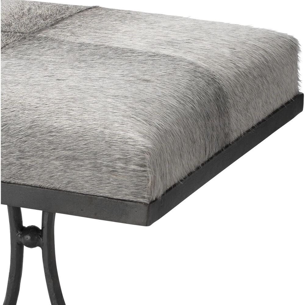The Kai collection features dynamically swooped hand-forged iron legs, with a delicacy unexpected from such a substantial material. The seating is topped with thick cushions of grey hair-on-hide, and the tables with strong tempered glass. Unexpectedly combining grace and strength, they make a striking addition an industrial, rustic, or eclectic home.