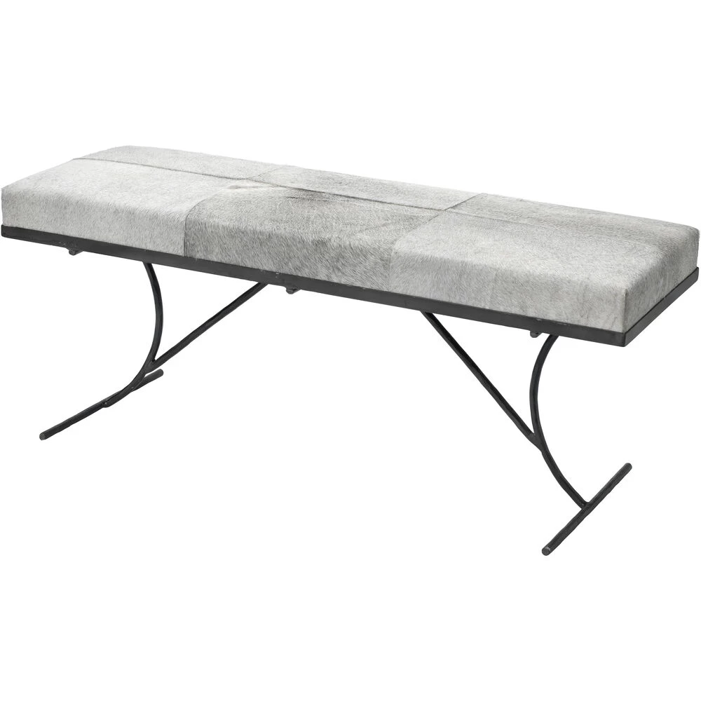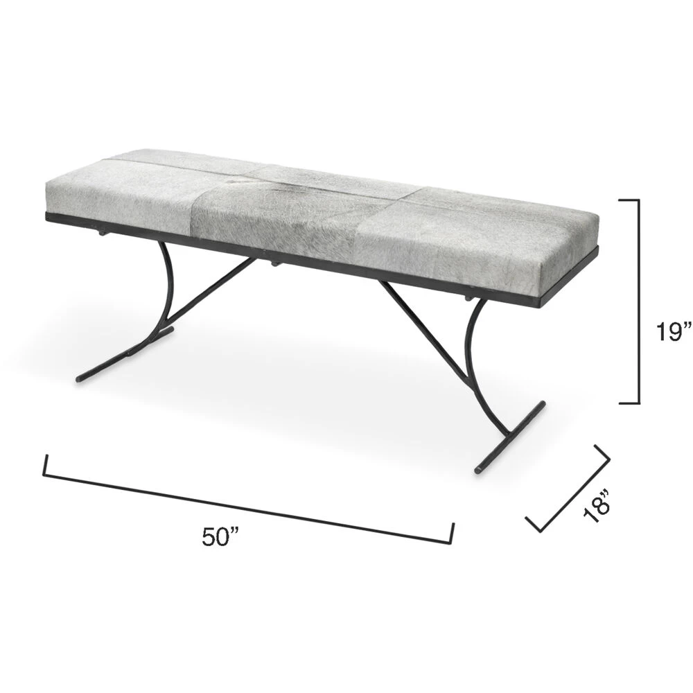 Unexpectedly combining grace and strength, this bench features dynamically swooped hand-forged legs finished in black and topped with thick cushions wrapped in leather. It makes for a striking accent pulled up to a dining table, welcoming entryway or at the foot of your bed.