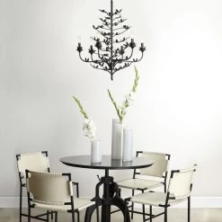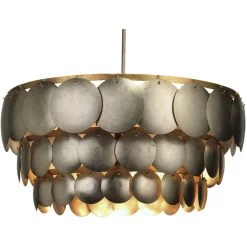 Capsize 5 Light 20 Inch Black Mother Of Pearl And Champagne Leaf Metal Chandelier Ceiling Light