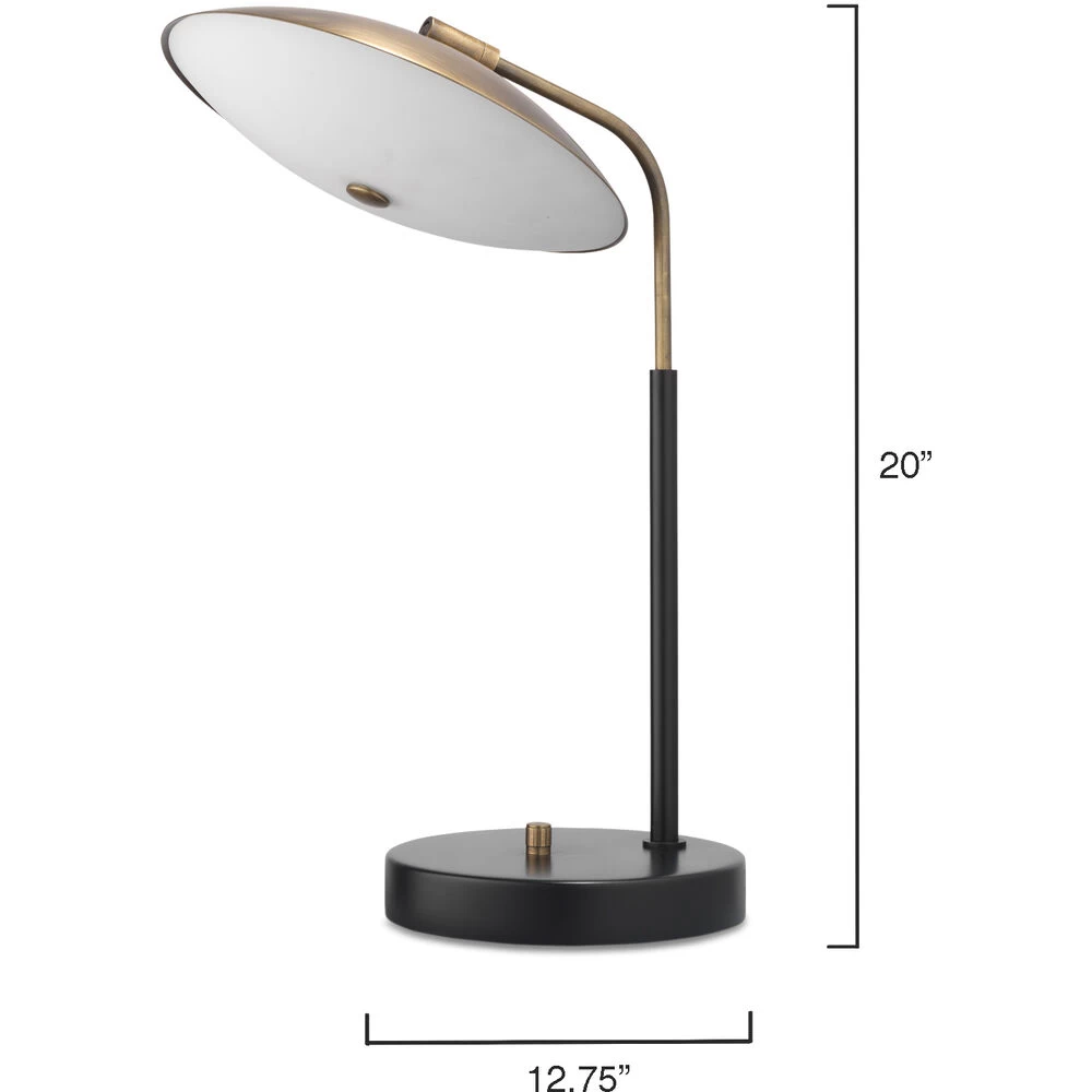 The design elements of this deceptively simple task lamp offer a glimpse into Jamie Young’s design process. Here, she pairs a hint of an Asian aesthetic with a touch of mid-century modern and creates something entirely contemporary. Expertly handcrafted of steel and glass, the hood of the lamp and its dimmable rotary switch are finished in a brushed brass. The base is in a rich matte black.