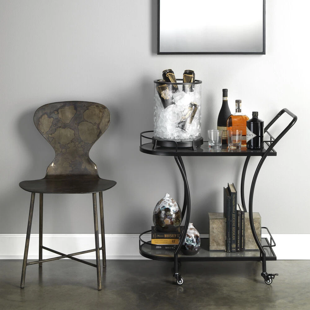 A unique chemical reaction is applied to this molded metal chair making a one-of-a-kind piece perfect for making a statement around any dining table!