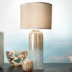 This mid century inspired task lamp has an hourglass hood with two directional sockets. One upward socket and one downward within the swivel hood make it easy to direct light for a great working environment. The high lacquer finish on the hood and base in white metal contrast the antique brass body creating a classic, modern and contemporary look to go on any desk.