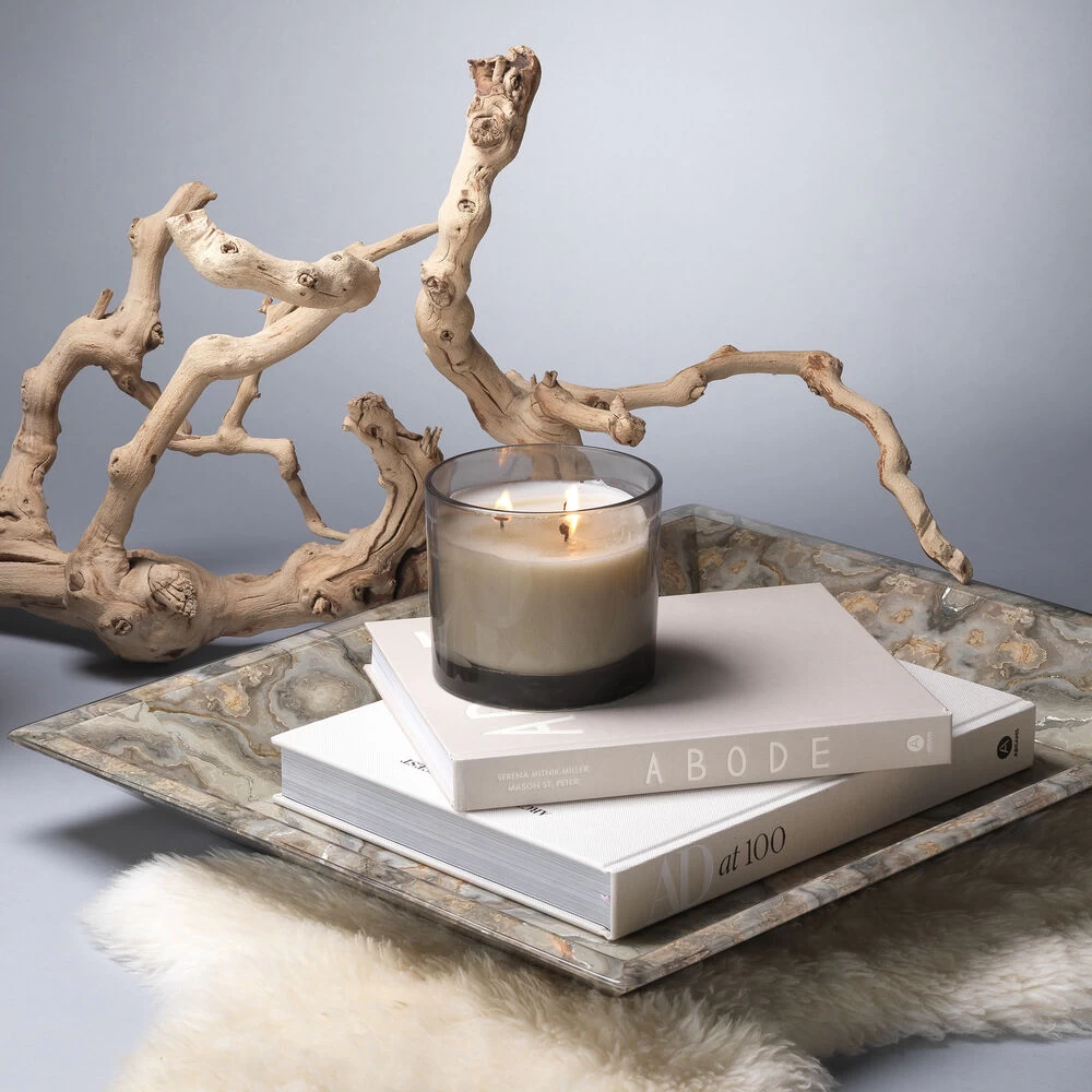 Inspired by Rorschach inkblots tests, known to examine emotion through interpretation, our Rorschach tray inspires you to look closer into the neutral tones of grey, taupe and cream, accented with silver and gold leaf. These components create dynamic patterns through overlaid photos underneath a clear lacquer.