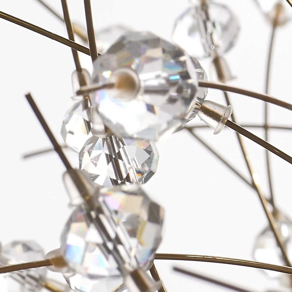 An explosion of light and style, each of the small crystals in this pendant reflect the light of it’s eight bulbs. The metal is given an antiqued bronze finish, contributing to the glamorous glow. Display in multiples at different heights to maximize the drama!