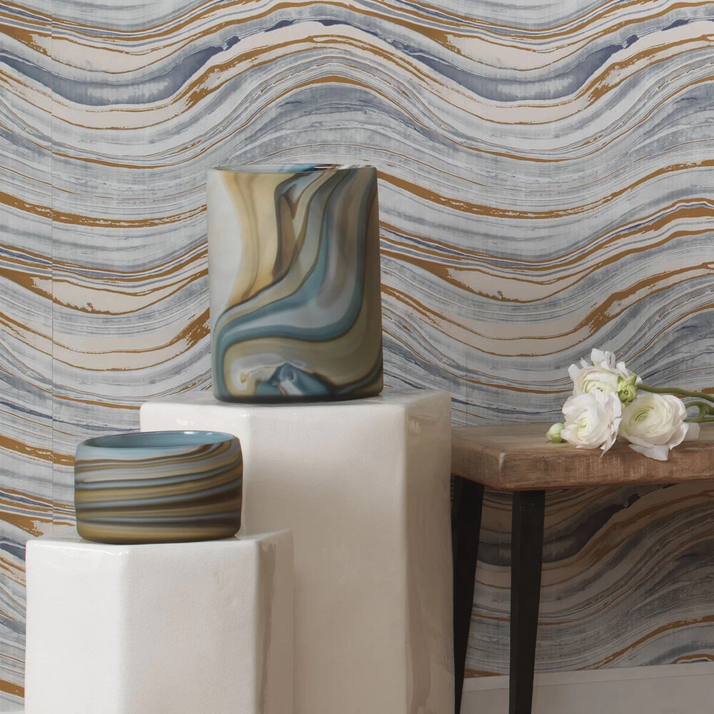 - Matte Swirl Finish in Blue, Orange and Brown tones