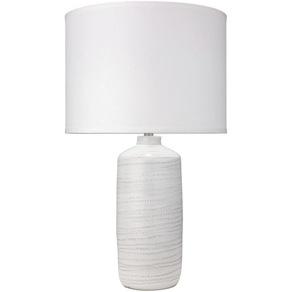 Simple yet sophisticated, creamy white, textured and hand-glazed ceramic lamp adds the perfect amount of subtle interest to any room.