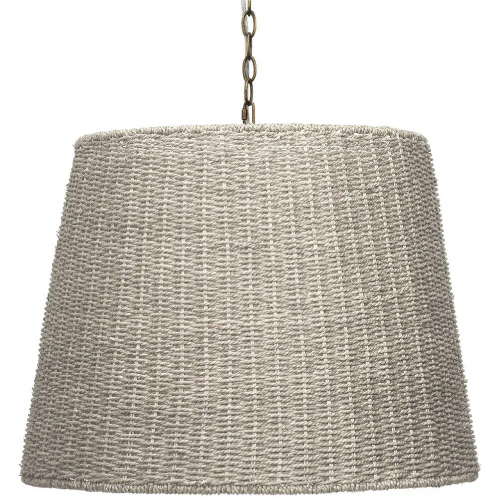 A basket weave made from braided fibers creates a naturally opaque drum that softens and diffuses warm light. The Willow Chandelier is an oversized hanging fixture that adds organic texture and soft illumination to any space.